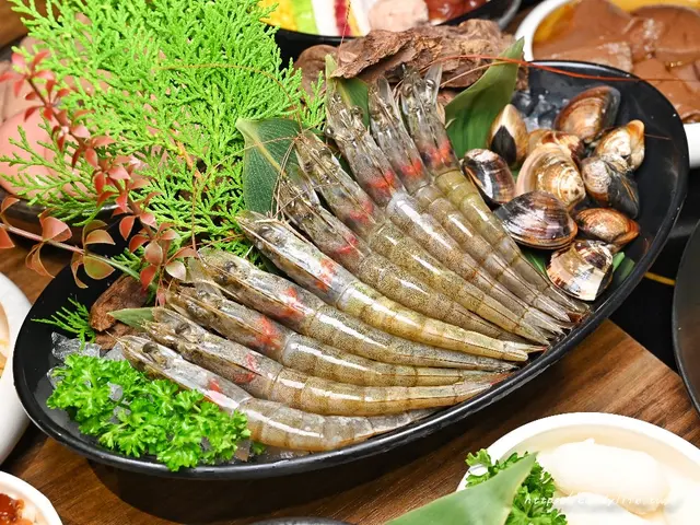 尚石苑的海鮮加點拼盤超划算,像這盤小痛風拼盤裡頭有新鮮南美白蝦及肥美大蛤蜊,海鮮都非常鮮甜可口呢