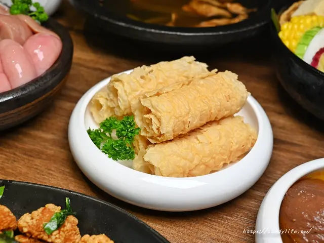 尚石苑的豆皮捲成蛋捲的模樣,下鍋煮比一般豆皮更能吸附湯汁,口感細緻軟嫩,好吃不油膩