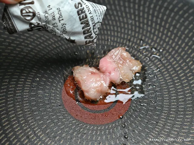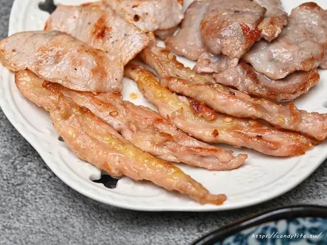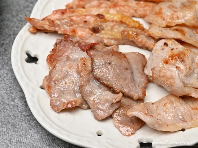 禮盒中另一款豬肉是梅花豬,油花雖然沒有剛剛的松阪豬來的豐富,不過肉質吃起來依舊鮮嫩多汁,糖糖最愛將梅花豬搭配著生菜及韓式泡菜一起享用,層次更加豐富