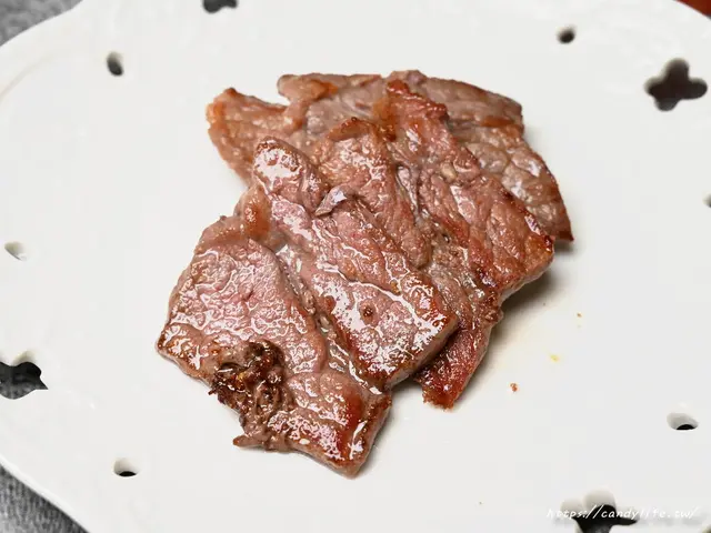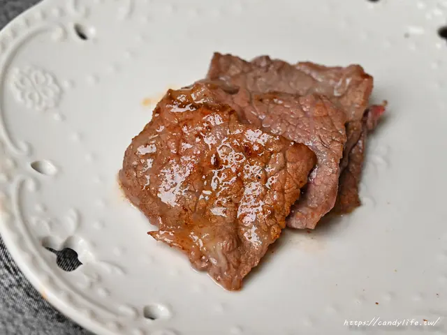 有著美美的大理石紋油花,油脂豐富,熟度烤至7分熟,軟嫩又多汁的口感中帶著濃郁的牛肉香氣,會越嚼越香唷