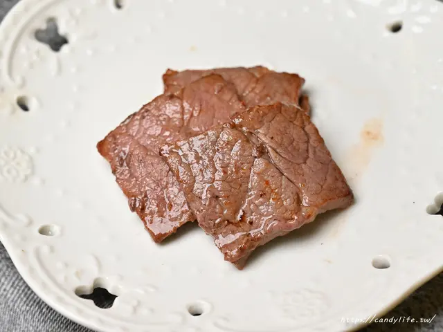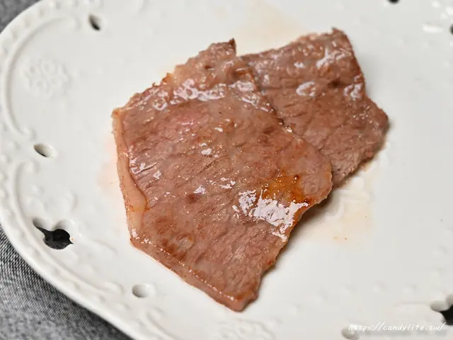 一樣有著美美的大理石紋油花,採厚切方式呈現,肉質紮實多汁,富有濃郁的牛肉香氣