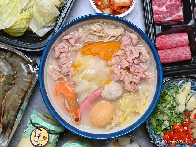 吃過山鯨燒肉的朋友一定對這鍋獸魂鍋不陌生,只要來山鯨燒肉用餐每桌都會附贈獸魂鍋,雖然現在無法內用,不過外帶一樣有獸魂鍋,湯頭採用雞骨下去熬煮, 湯頭非常濃厚,裡頭的配料也挺豐富的呢,有豬肉、蝦子、高麗菜、南瓜、丸類、火鍋料、金針菇等