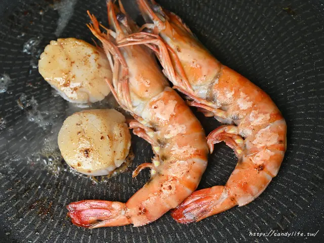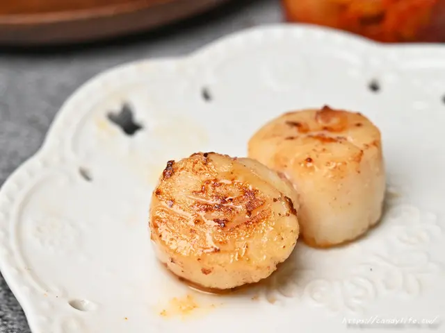 採用生食級的日本北海道干貝,將表面烤至金黃維焦,裡頭不用烤到全熟,大概8分熟度最剛好,肉質相當軟嫩,一口咬下去,干貝的鮮甜滋味會在嘴裡爆開來
