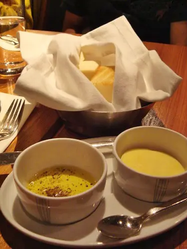麵包感覺好像是厚片吐司切邊切方塊狀烤的非常的香酥,搭配橄欖油跟另一款