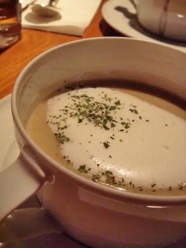 今天的湯品是卡布奇諾蘑菇濃湯,有五種菇類在裡頭唷!上面還有一層綿綿密