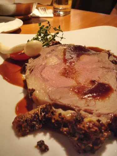 烘烤美國肋眼牛,吃的是他的原汁原味,也可搭配海鹽與芥末子食用,今天很