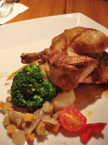 阿義點的法式烤春雞,我也有分到一小塊雞腿,如果皮烤的更脆就更完美了,