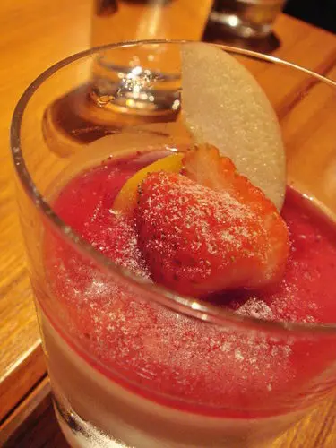 甜點是草莓奶酪,很大一杯唷!都快吃不下了,奶香濃濃而且也不甜不膩