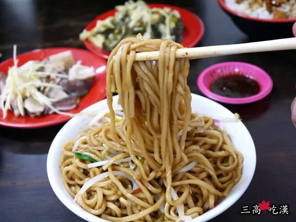 台中式的炒麵即煮熟的生麵與醬汁拌炒後,再淋上肉燥,看店家有的還會加上蔥或豆芽,