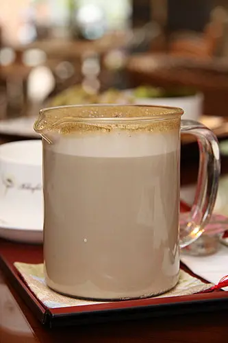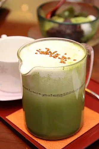 忘記叫什麼名字了,點這個是因為不想要一桌子都點抹茶產品啦!!好像是焙茶拿鐵之類的,就是用日本進口的那種深焙的茶去沖泡的奶茶,有著淡淡茶葉焦香味,喝起來是一種有深度的口感,味道很棒,但就是被抹茶玄米歐蕾給硬生生比下去囉~~