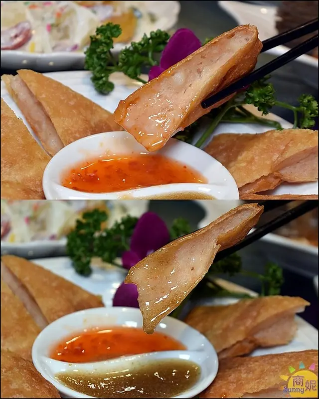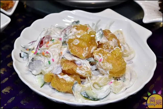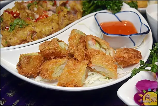 炸海鮮多了高麗菜吃起來更清爽,沾泰式甜雞醬酸甜微辣好好吃。