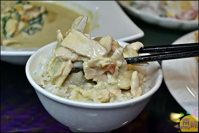 軟嫩的雞肉除了咖哩之外還有滿滿椰奶香甜滋味,加上香茅更加分,綠咖哩醬拌飯特別好吃。