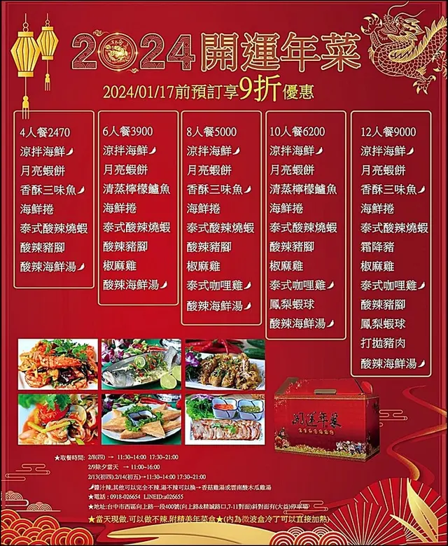 今年開年菜依照人數共設計出5款年菜,辣度都可以客製化微調,聽說每一年都搶購一空,過年期間享用泰式料理年菜也很不錯喔。
