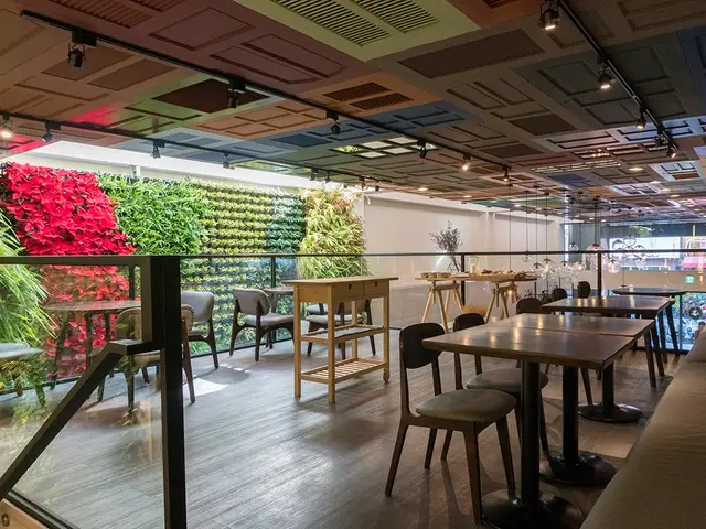 店家後方設了一整面的花草牆面,綠意盎然的超適合拍照。也有提供小包廂,也蠻適合多人聚餐的唷