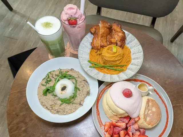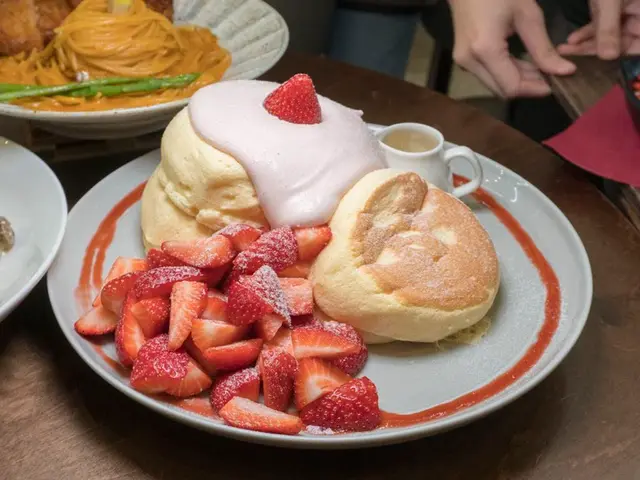 這裡的厚鬆餅很厲害耶,很軟、很嫩、口感迷人,搭配店家自製的草莓果泥鮮奶油,整個草莓香氣大爆發了,吃完這道真的是會有滿滿的幸福感