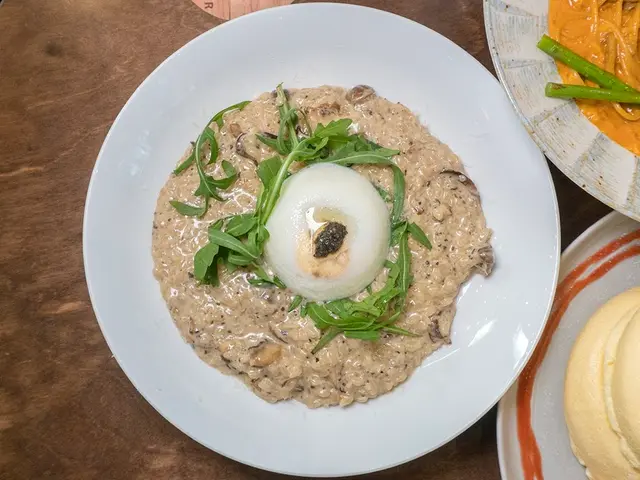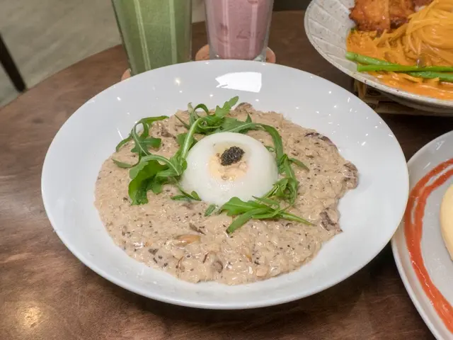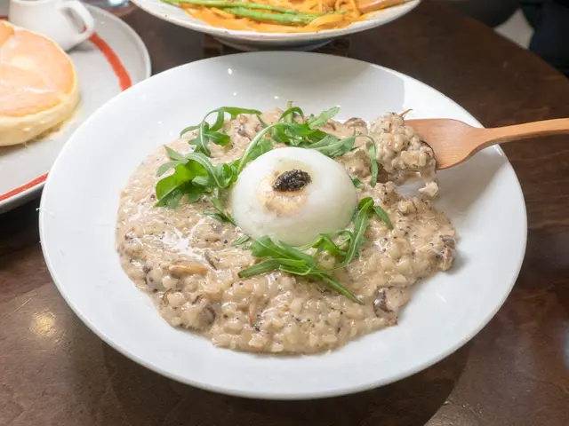 在木門咖啡點選燉飯類的餐點,米飯的部分是可以選擇正常,或是軟一點的。這道燉飯看似平凡,吃起來可一點都不平凡!菇菇用量豐富,每一口都吃得到菇菇揪C的口感,整體香氣也很讚,是一道吃過就會愛上的料理,燉飯上用香氣豐富的芝麻菜來當配菜,也對這道燉飯加分不少。