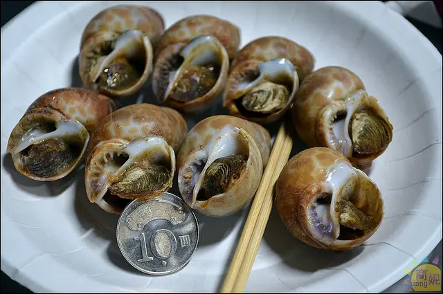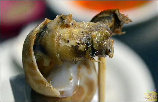 第一青的風螺做法是先將胡椒粉塞入風螺內醃三天以上充分入味