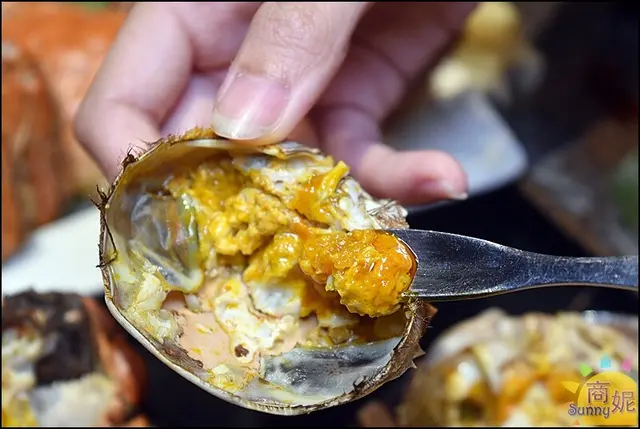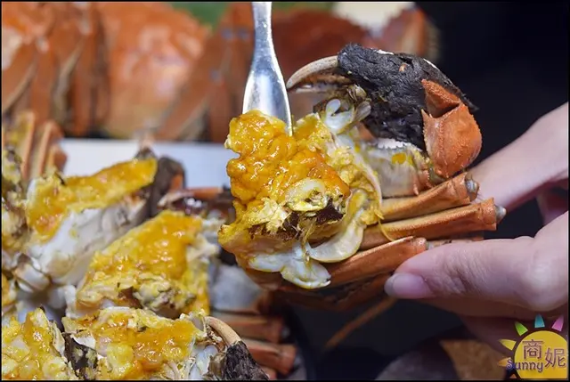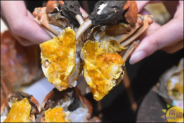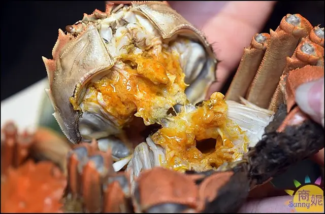 連蟹殼上好多蟹膏,隨便挖都能吃到好甜好甜的美味,在這裡吃大閘蟹不必花大錢有夠爽啦~