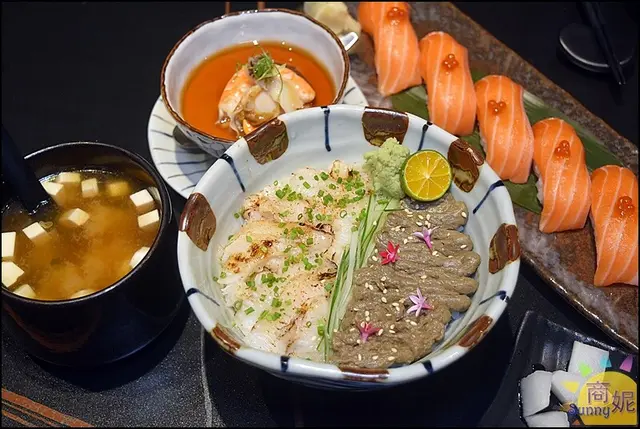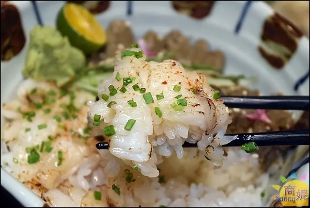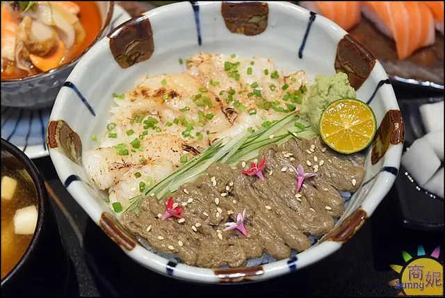 這一碗丼飯用料不手軟,一半比目魚鰭邊肉、一半滿滿的蟹膏,非常豪邁!!