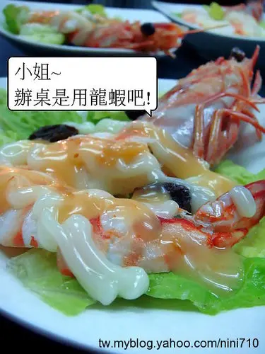 吃到了這邊真的是要感動得掉眼淚了啦!竟然是一人一隻活跳跳的大明蝦沙拉耶!看到著個就想起每次吃辦桌時,大家都要搶食的那一盤明蝦沙拉,每次能吃的到第二片就是你上輩子有燒好香啦!今天竟然可以自己獨享一整隻呢!800元值得啦!