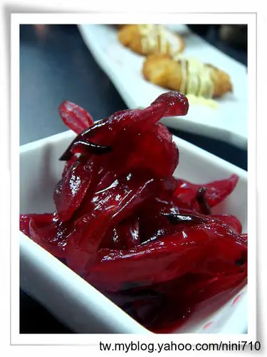 就是他,好吃的不得了的醃漬洛神花,清脆的口感,酸甜的滋味,好像蜜餞一樣,真想買一些回去