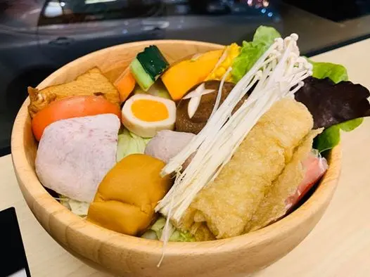 用木碗裝的菜盤看起來很有質感,份量不少,火鍋料不多,蔬菜也新鮮。