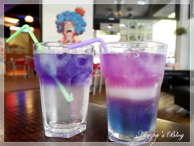 寶寶的就像是一杯紫色雪碧~我的還有檸檬~