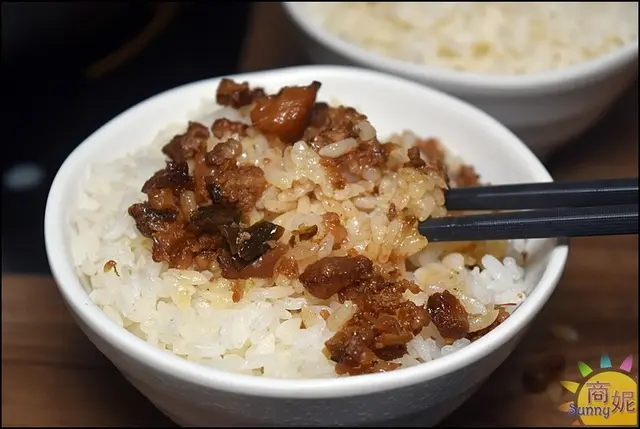 滷肉飯的肥肉瘦肉都有,跟米飯攪拌後吃起來不油膩,越咬越甜。