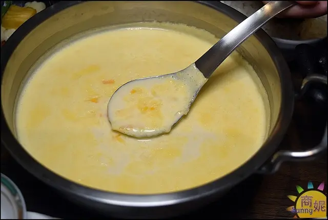 跟一般的牛奶鍋不同的是,還有加上主廚自己熬煮的烤布蕾醬,味道香濃涮煮蔬菜及肉品很加分。