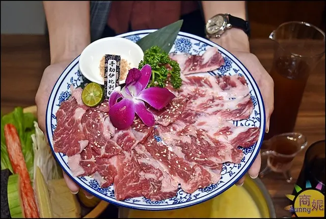 伊比利豬油花漂亮,一盤份量十足,手切冷藏肉有點厚度,下鍋煮後口感更棒!
