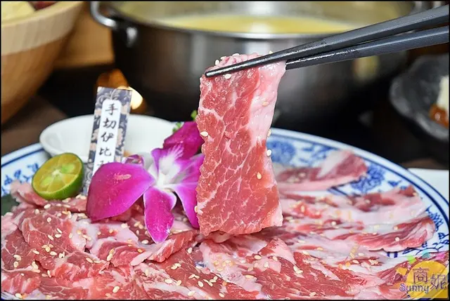一般火鍋店大多是機器切冷凍肉片,冷凍時有冰晶形成肉質組織遭到破壞口感較差,冷藏肉不會有冰晶,吃起來口感更軟嫩多汁,吃過之後會回不去啊~