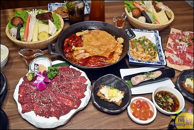 附湯底、菜盤、開胃菜、小點、米食、小品、甜品,不吃菜盤還可以換肉肉。