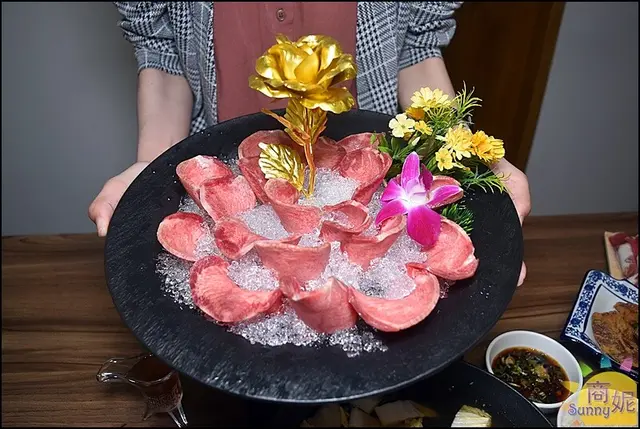 超大一盤牛舌真的很驚人,從正上方看就像一朵盛開的玫瑰,擺盤也是很浮誇。