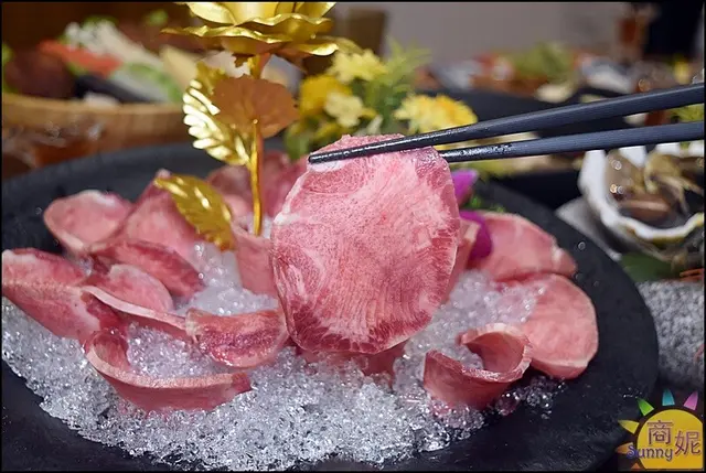 超大盤的牛舌花份量好多,每一片都帶點厚度,軟嫩又帶點脆度口感一級棒!我覺得比在燒肉店吃的牛舌還要正點。平常吃牛舌一小盤就要好幾百,在這裡爽爽吃一大盤再加上海鮮只要888元CP值大爆表!