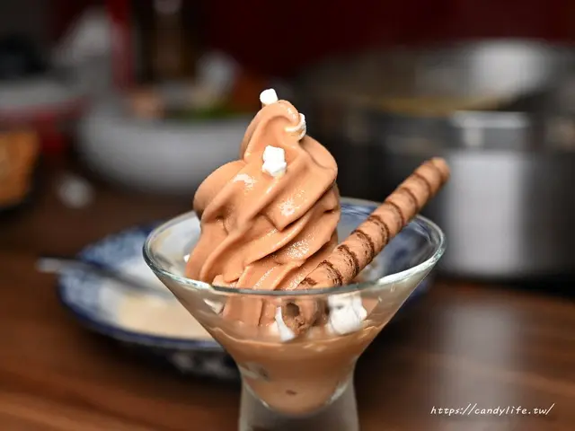 甜點的部份有黑糖奶茶霜淇淋及綠豆仁西米露兩種,黑糖奶茶霜淇淋吃起來有點像珍珠奶茶的味道,黑糖香氣十足,吃起來不會太過甜膩