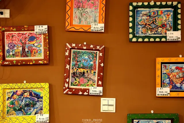 通往二樓的樓梯 還有很多小朋友的可愛畫作 超級療癒的