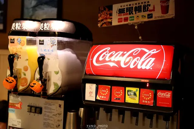 禾荳家咖哩屋內用提供飲品無限享用 包含氣泡飲及冰沙品項 搭配咖哩超對味