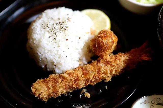 今天升級D餐包含一顆炸牡蠣和一隻炸黃金海老