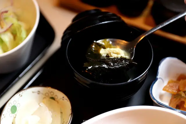 每一份餐點附米飯、小菜、湯品、高麗菜絲、還有飲料