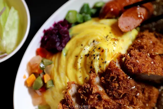 德式香腸口感脆彈多汁 加上特製咖哩醬增添風味搭配外酥內軟的豬排 層次豐富吃的超滿足!