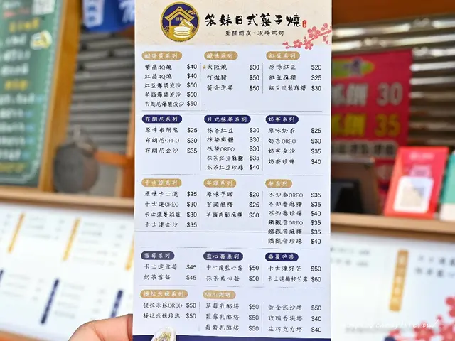瞧瞧笨妹日式菓子燒密密麻麻的菜單,就知道裡頭的品項有多豐富,仔細一算,光是車輪餅口味就超過40種,而且都是外面比較少見的口味,除了車輪餅外,笨妹日式菓子燒也有販售手作mini甜塔