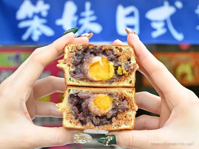 如果想要一次吃到很多種料的朋友,可以試試笨妹日式菓子燒的4Q燒系列,一顆車輪餅一次包了四種配料,像這款紅晶4Q燒,裡頭有鹹蛋黃、自製紅豆泥、肉鬆及麻糬,紅豆很綿密,還吃的到微微的顆粒感,伴隨著肉鬆及鹹蛋黃的鹹香滋味,讓層次更加豐富