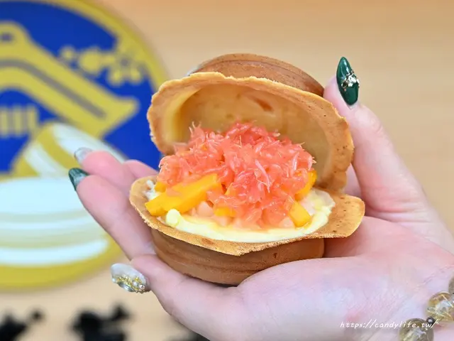 這款卡士達楊枝甘露是夏日限定推出的口味,將香港甜點融入車輪餅中,採用當季新鮮的愛文芒果、紅柚及荔枝,搭配自製椰漿卡士達,一口咬下去先感受到塔皮的酥脆口感,冰涼的椰漿卡士達內餡,吃的到芒果的香甜果肉及微酸的紅柚,特別的是裡頭還吃的到楊貴妃最愛的荔枝果肉,果香味層次相當豐富,清爽不膩,好吃又有飽足感