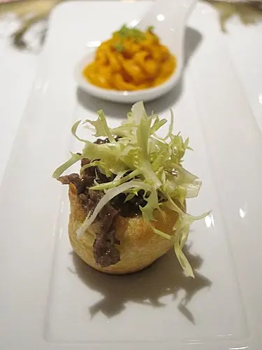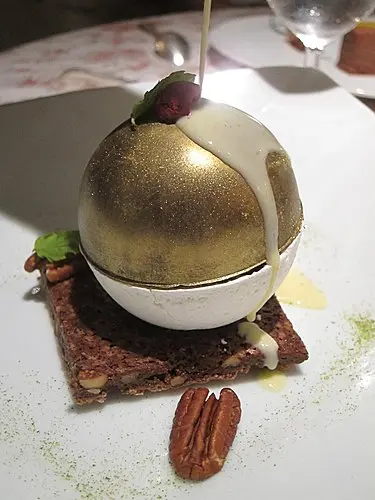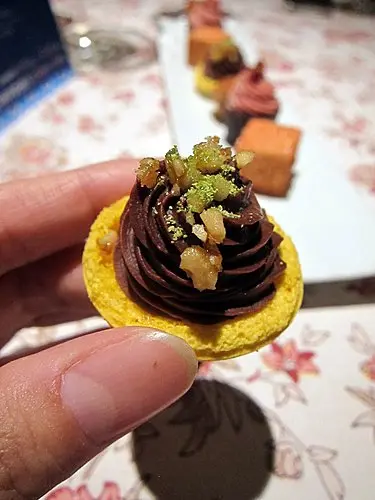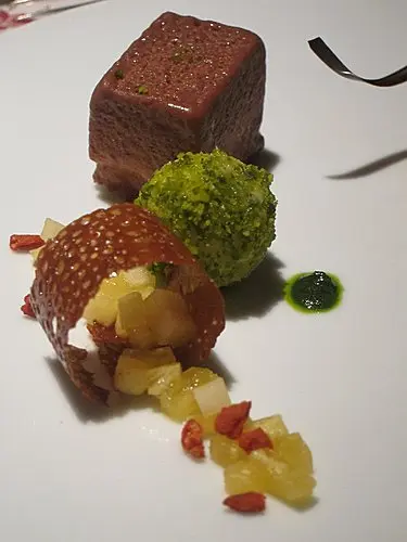 單點甜點巧克力球,花生,香蕉與萊姆,因為上菜都亂了~這道本來是米兒想吃的,最後送到客人面前,我只好含淚看著別人吃下去。。。。。。
