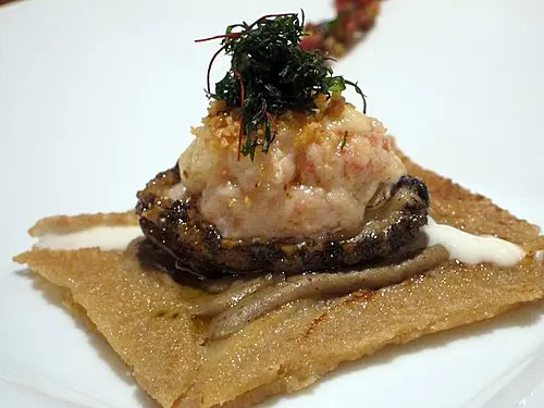 黑盤鮑與蕎麥薄餅,西班牙辣香腸和羅勒茄子醬,我也沒吃到,但貴賓說好吃到爆~