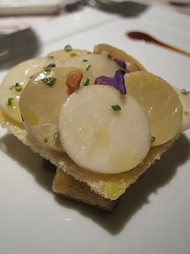 主廚特別招待的松露燉蛋,那片透明的是馬鈴薯薄片!手工真的很細緻!不過個人覺得味道有點重,把松露和蛋的味道給蓋住了,小小可惜!