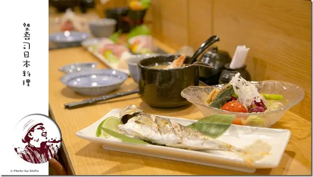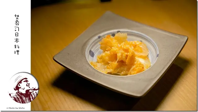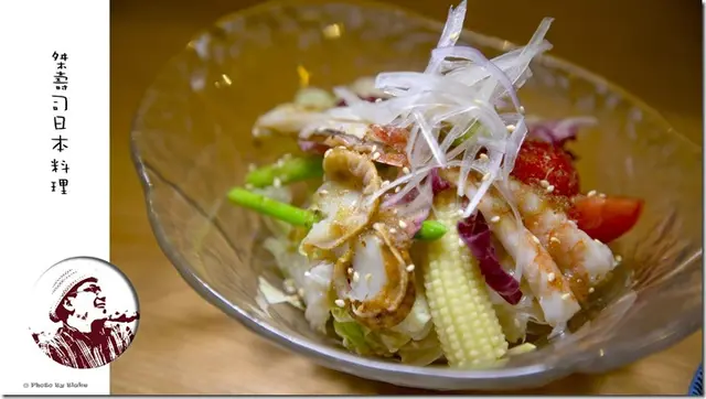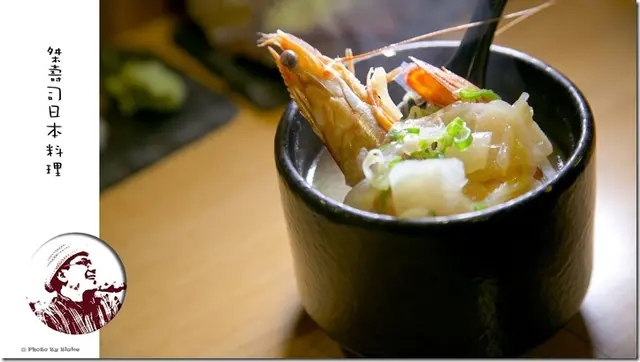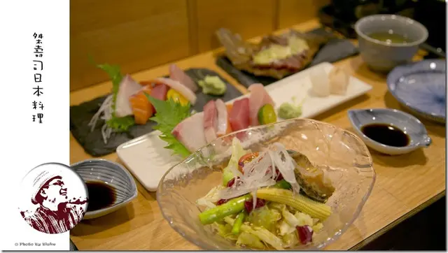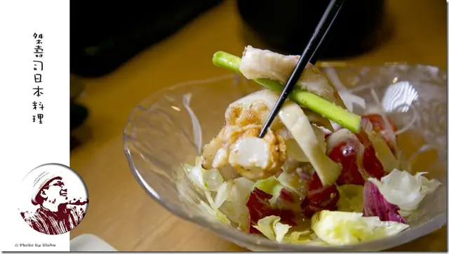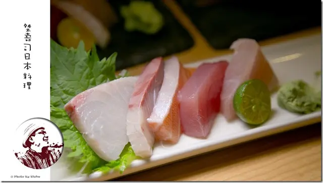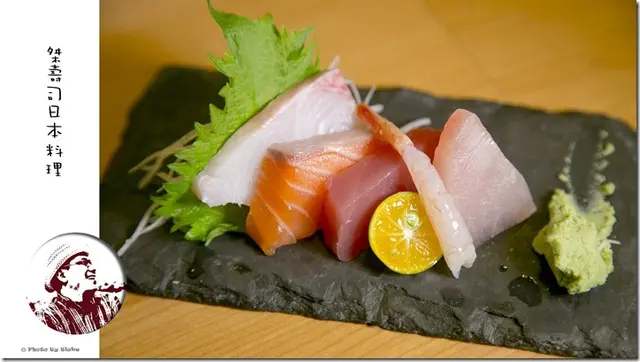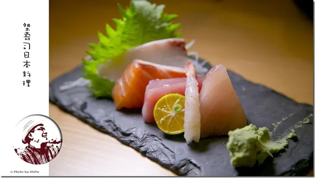綜合生魚片的擺設算是典雅,以石板作盤,上面放了海鱺魚、鮪魚、旗魚、鮭魚與甜蝦,海鱺口感不錯,鮭魚的油花也是值得一嘗,甜蝦甜度一般(可能只有一隻吃得不夠爽),旗魚油脂少口感上取勝,擠上一點金桔味道上會更清爽一點。