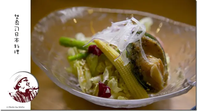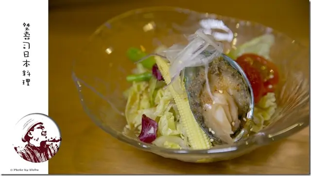 780主廚客製套餐的生菜沙拉與580主廚客製套餐不同,就是將海鮮食材換成磯煮鮑魚,和風醬料的沙拉一樣的開味,鮑魚吃起來富有彈性,口感十足,鮮味夠,但料理的不夠細緻,沒有讓鮑魚的鮮甜味更加明顯,表現平平,誰叫布雷克有吃過更好吃的,可是是在台北。