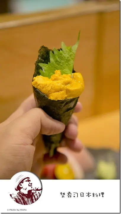 海膽的部份就吃要吃它的綿甜,這海膽手捲正中紅心,一入口就綿到要化開,再搭上醋飯,整個就想一口吞下,紫蘇的中和,讓整個味道分明,不會互搶太多,這海膽真的鮮甜。