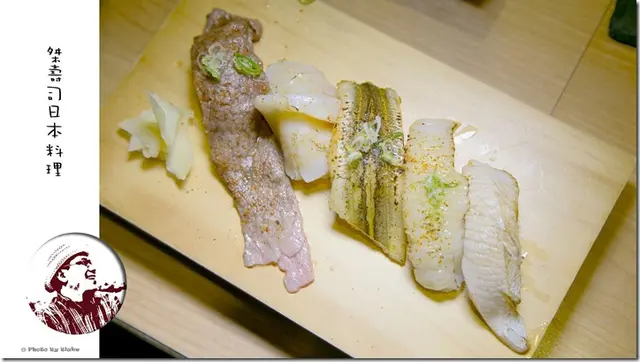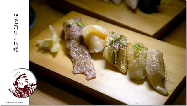780元套餐的炙燒綜合握壽司用得食材當然比580套餐來得好一點,炙燒牛肉、星鰻、炙燒比目魚鰭邊、炙燒干貝與炙燒海鱺等五貫,炙燒海鱺就不多說了,不管是生魚片還是炙燒都好吃,星鰻吃起來比較素雅一點,醬料沒那麼重,炙燒比目魚鰭邊細緻的口感讓人留下不錯的印像,牛肉與干片也讓人不失望。